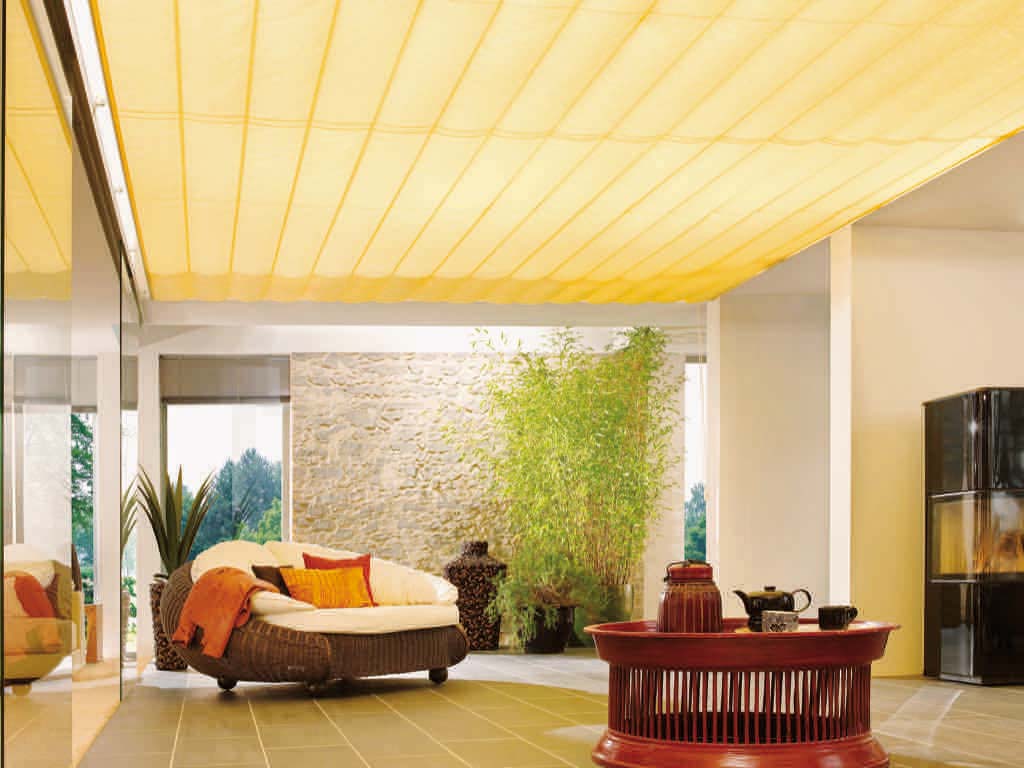 Heute ist Baldachin eine geläufige Bezeichnung für eine Sonnenschutzeinrichtung in Form einer Deckenbespannung bei der Innenbeschattung. Sonnenschutz, Wintergartenbeschattung.