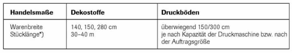 Dekorationsstoffe können auf Webautomaten bis zu 300 cm Breite gewebt werden. Damit lassen sich raumhohe Dekos herstellen, die sonst üblichen Saumarbeiten können entfallen, wenn bereits eine Unterkantenverarbeitung z.B. durch Einketteln eines Bleibandes vorgenommen wurde.